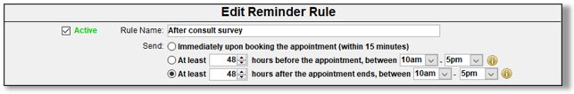 You can utilize the reminder rules to send out post-appointment messages. These can be used for sending out post-appointment surveys, review requests, and many other uses. Post-appointment messages can be sent up to 999 hours (41.6 days) post appointment.