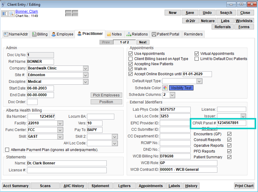 Client Card The data from the client card that is included in CPAR includes: Name (Last, Middle, First) PHN (CPAR retrieves the number and the recovery province) Gender Date of Birth Verified Date Last Visit Date (this is pulled from appointments) ...