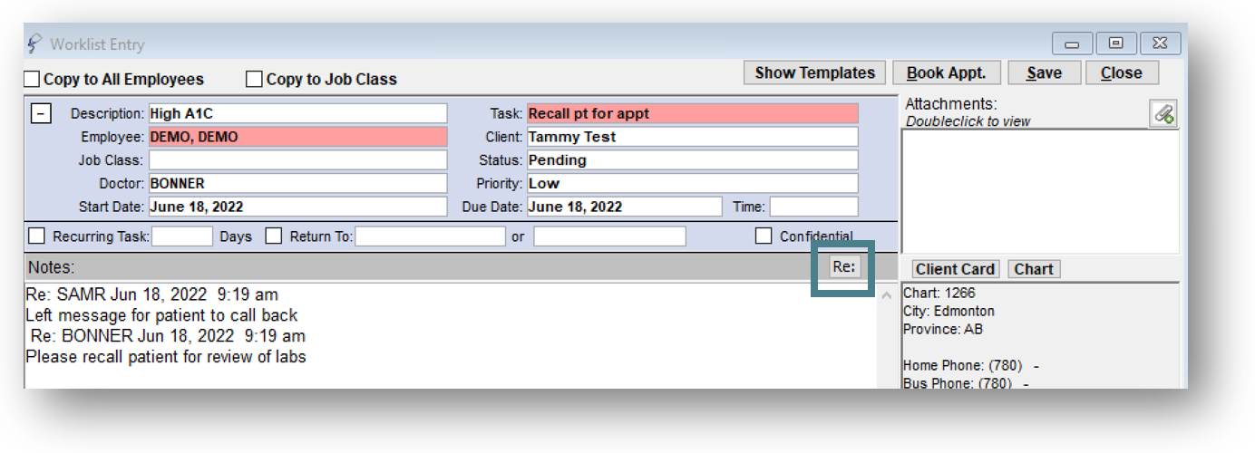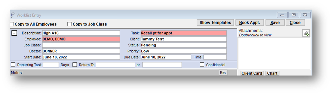 a. Task Type - Dropdown used to categorize worklist. These can be customized for your clinic, click here to learn how.