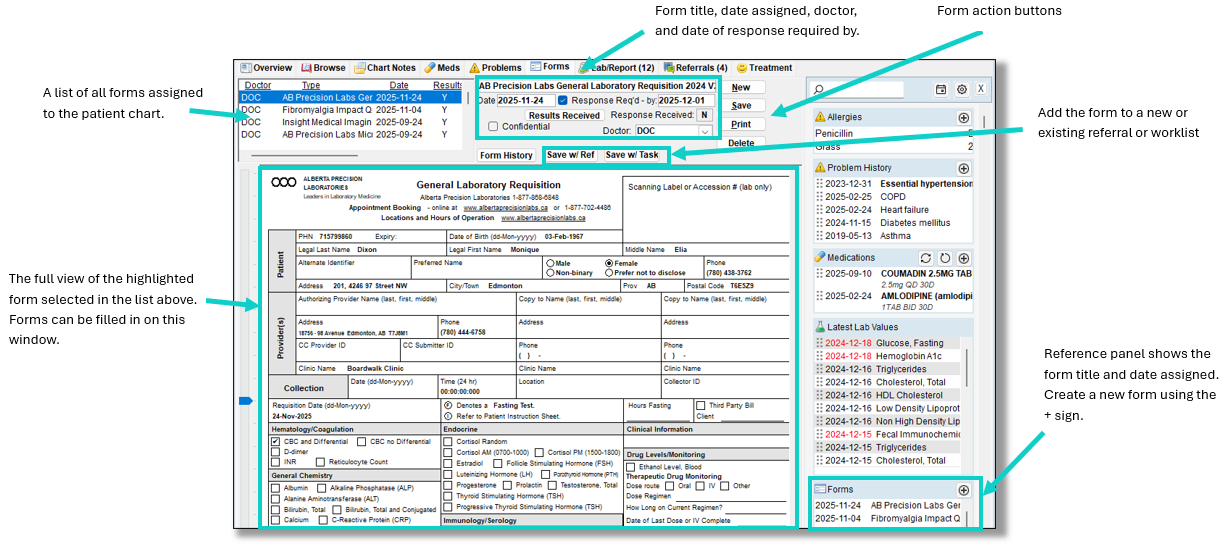 The charting module contains all patient charting information: chart notes, scanned documents, problems, medications, forms, letters, referrals, worklists, and, if the features are enabled, patient messaging and treatment plans. Open the charting ...