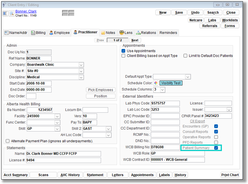 Next, go into the provider's client card. Select the practitioner tab. In the CII section, check off Patient Summary.