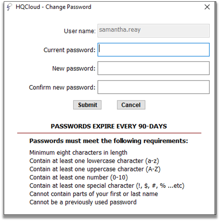 your own Healthquest cloud password, Click the link in the email you received advising you to change password.