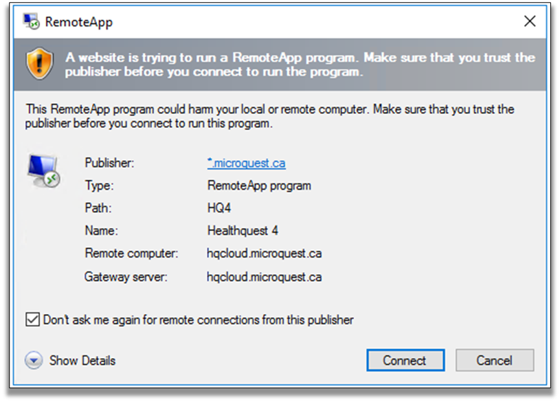 Note: MacOS users require the free Microsoft Remote Desktop application to access Healthquest Cloud. See the MacOS Install Microsoft Remote Desktop Client section for more information. Open a web browser and navigate to: Healthquest Cloud Login with ...